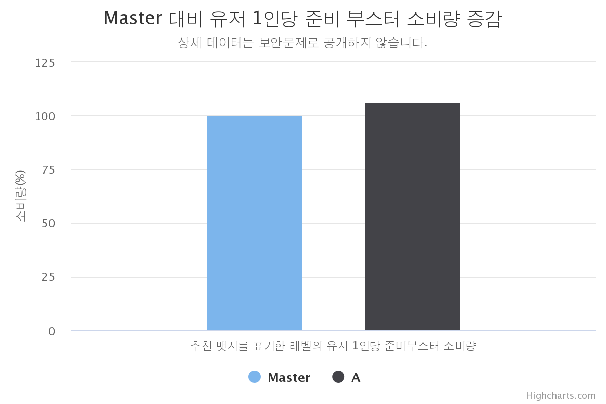 이 두 가지 레퍼런스 방식을 혼용해 캐릭터 선택이 아닌 준비 부스터 영역에 추천 배지를 표기한다면 준비 부스터 구매와 사용을 늘릴 수 있을 것이라 예상했다.