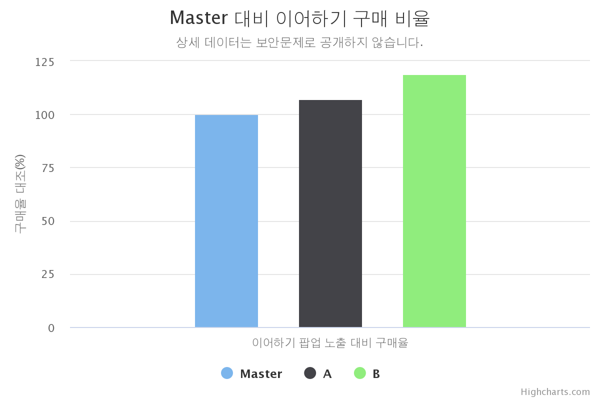 매치 장르 일종인 마작(Mahjong) 라이브 프로젝트에서 3개 세트(Master/A/B)로 나누어 실험했다. 다른 실험과 마찬가지로 레벨 디자인과 재화(코인과 부스터) 공급량은 통제 변인으로 각 세트 간 동일하게 적용했다. 단 이 실험에서는 일종의 조절 변인으로 페널티 정보 제공 시 각각 1단계(depth)의 UI 플로우와 2단계의 UI 플로우로 나누어 지표를 추적했다. 더불어 페널티 정보를 2단계로 제공할 때 혹시 플레이타임과 리텐션 하락이 있는지 점검해보기로 했다. 일주일간 세트별 약 50,000회 이상의 팝업 노출과 구매 로그를 추적했고, 독립 변인은 손실 회피 편향 자극 정보(하트 낭비) 표기, 종속 변인은 이어하기 구매 비율로 보았다.